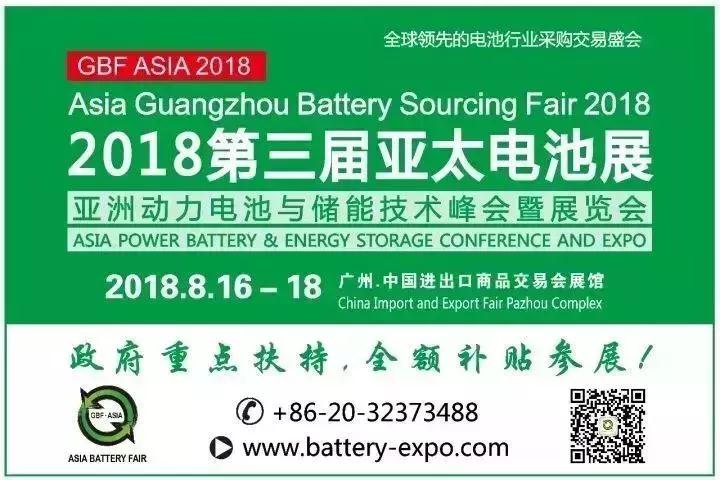 2018第三届亚太电池展规模增至3个展馆、45000平米、500余企业、35000余观众!国内企业参展,补贴后展费最低3860元/个。